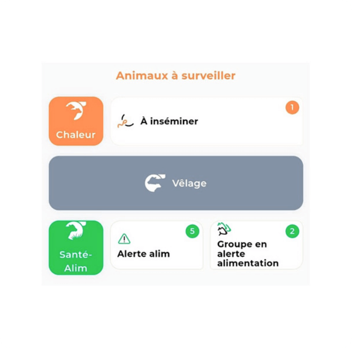 Grâce à leurs fonctionnalités avancées, vous consultez les alertes liées aux chaleurs (animaux à surveiller, à inséminer…), aux vêlages (en cours et difficiles) et à l’alimentation (temps de rumination, temps d’ingestion).