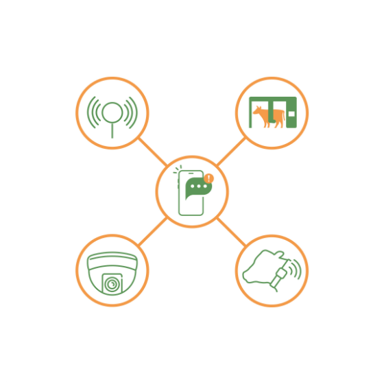 une application unique et compatible avec tous les équipements de votre élevage (caméras, capteurs, Farmbox, robots de traite, balances de pesée, distributeurs d’aliments…)