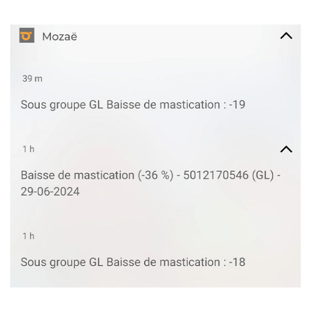 Thanks to the early warning system offered by Mozaë, you can intervene much earlier in the problems of your herd. For example, you identify a cow with early lactation metabolic problems and limit production and reproduction losses.