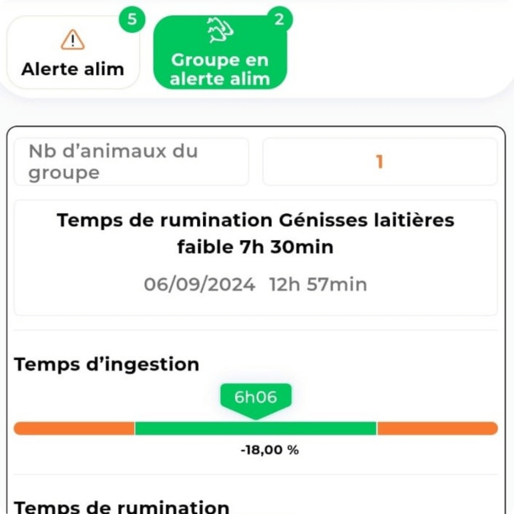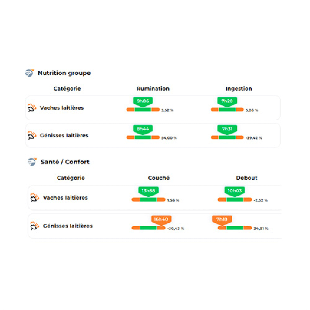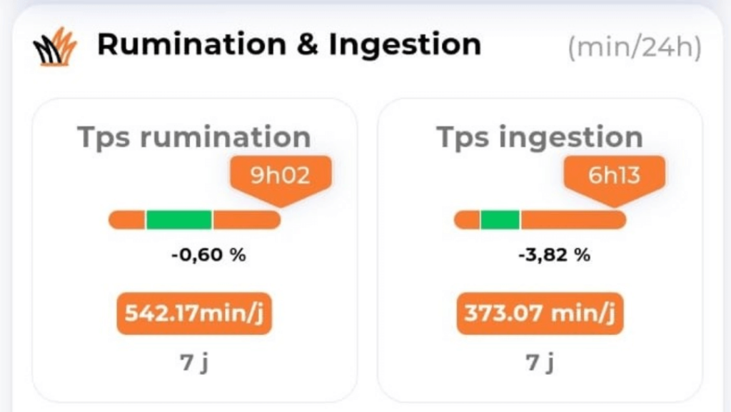 Indeed, the measured parameters such as ingestion time, rumination time, general activities (standing, lying, other activity,…) directly reflect the level of productivity of the herd in your farm.